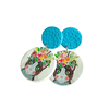 Brinco Duplo composto por duas peças em cerâmica polímera com acabamento em verniz. Uma peça maior com 27mm de diâmetro, acompanhado de uma peça mais pequena de 16mm.