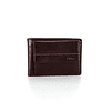 Carteira em pele genuína com porta-moedas com mola, espaço para 6 cartões, 1 transparência, 3 arrumações interiores e 2 divisões para notas. Com proteção RFID*.