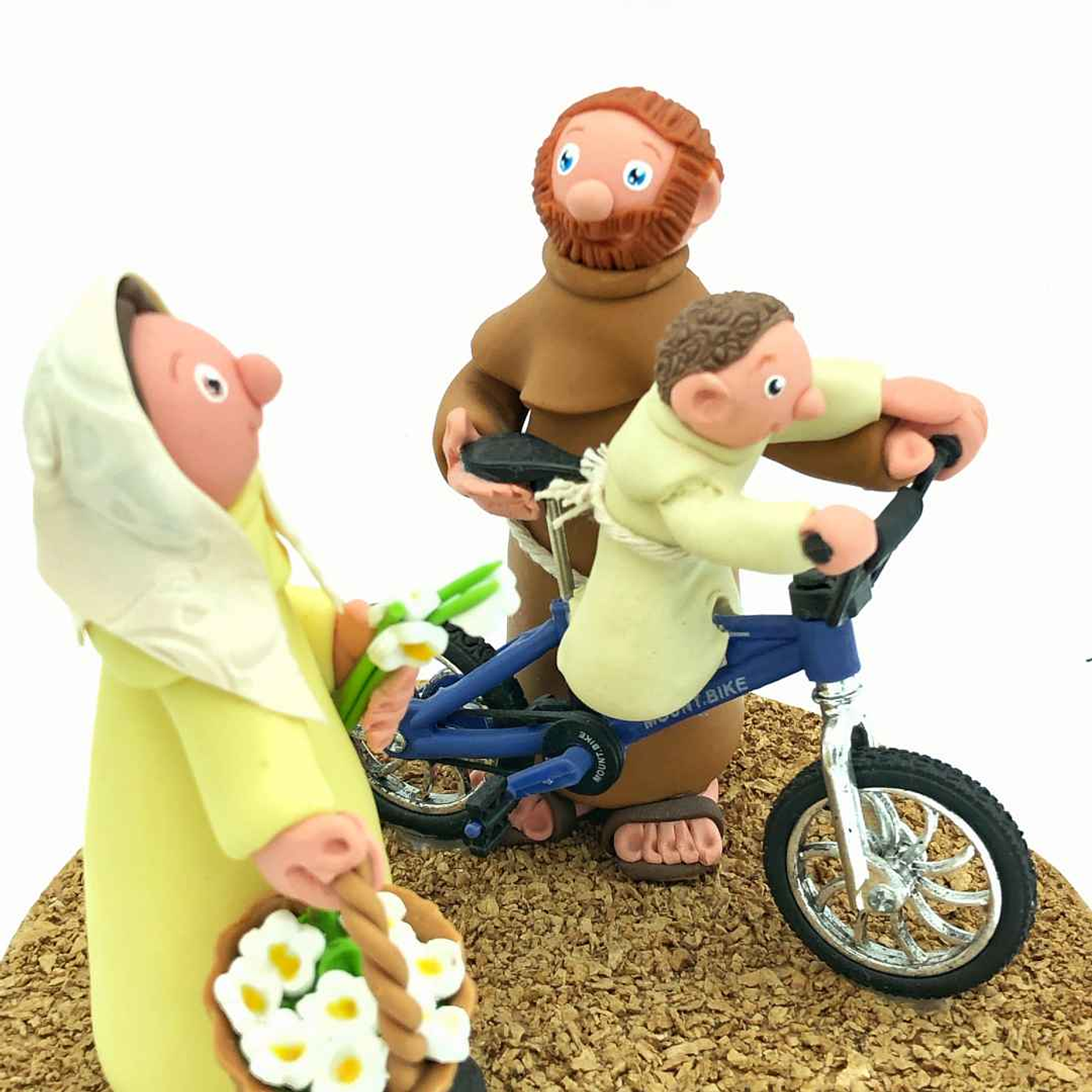 Neste exemplar observamos com José ensina o menino Jesus a andar de bicicleta, enquanto Maria apanha umas flores. 💕