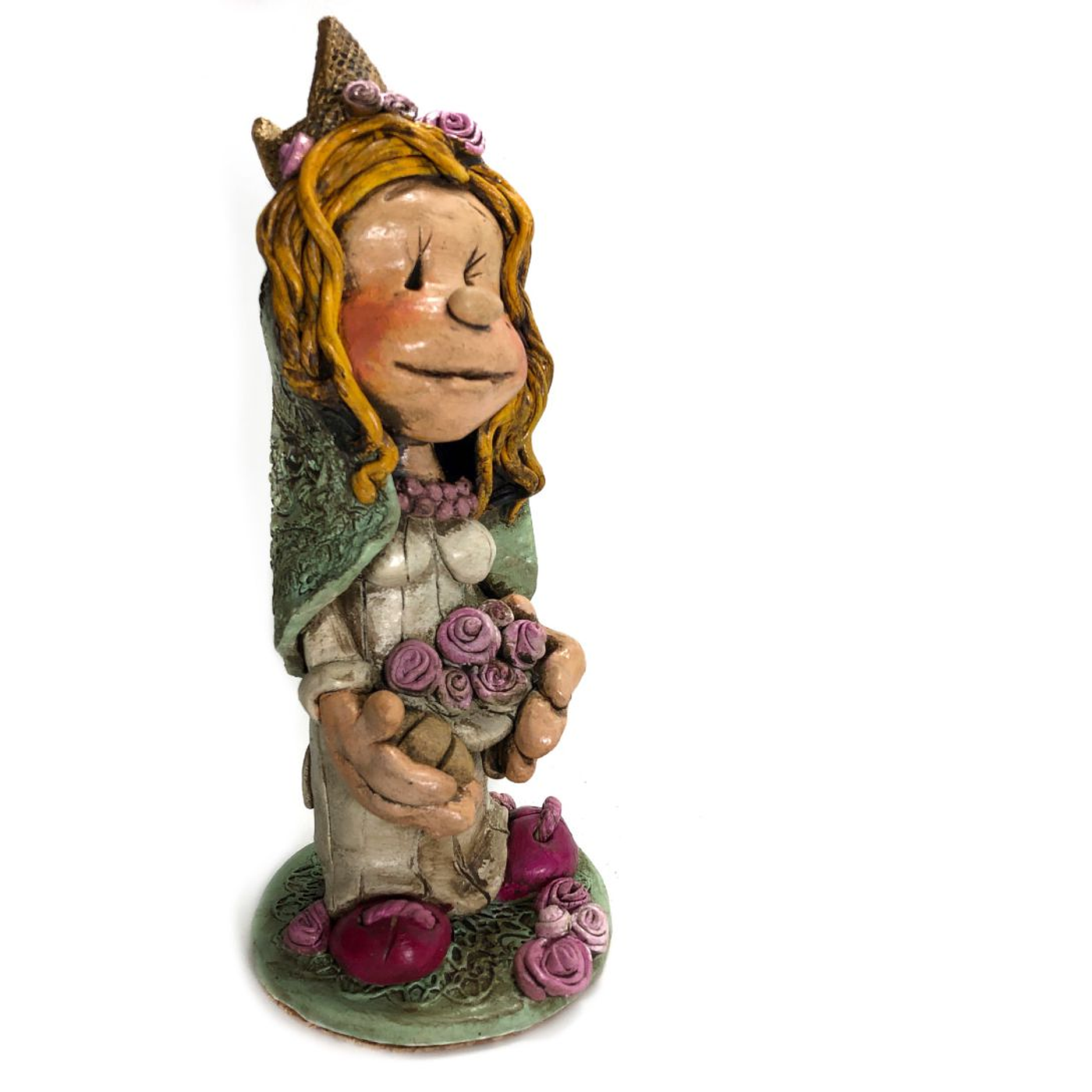 Magnífica representação de Isabel de Aragão, Rainha Consorte do Rei D. Dinis. Feita em cerâmica, pintada à mão com cuidado e paixão por artesanato. Os pormenores do cabelo loiro, o colar, o vestido são apaixonantes. 😍 Edição de colecionador!